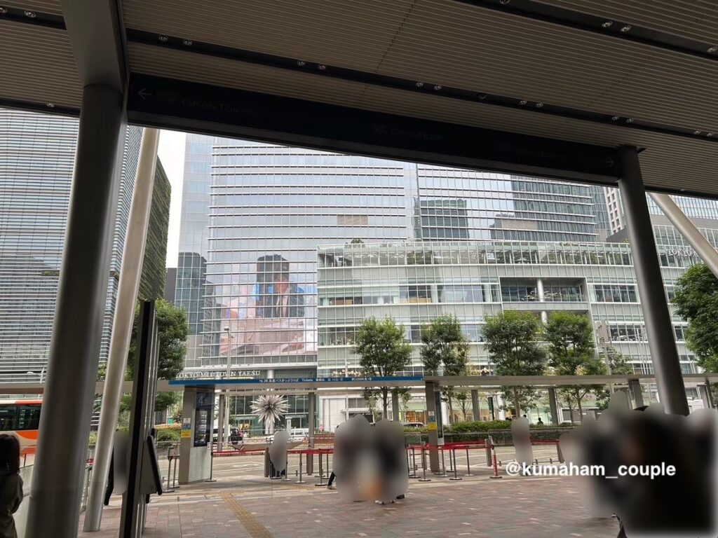 バス停の前には「TOKYOMIDTOWN YAESU」が見えます