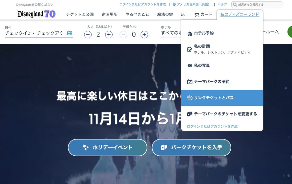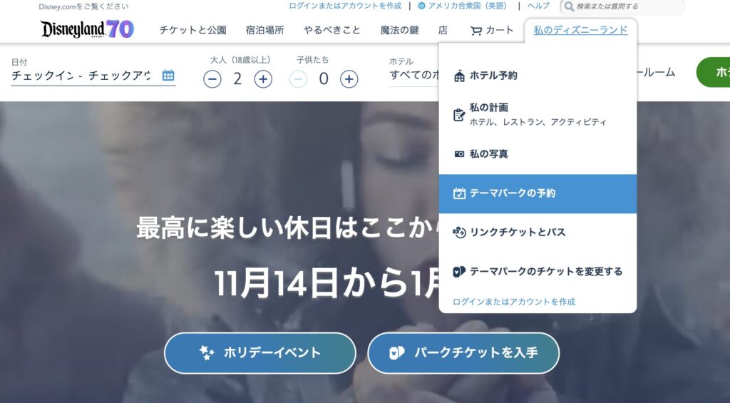 ディズニーランド公式サイトで行います
