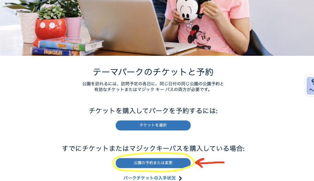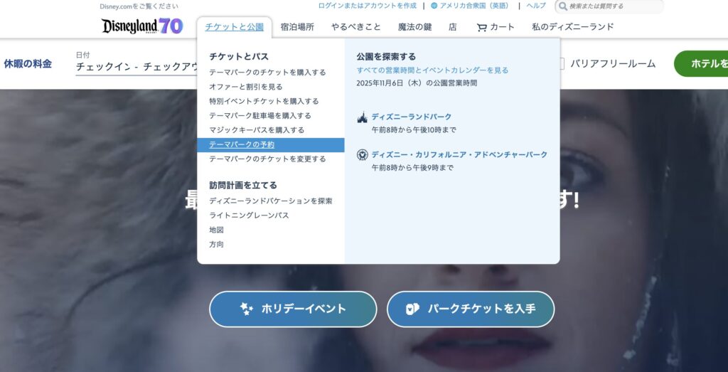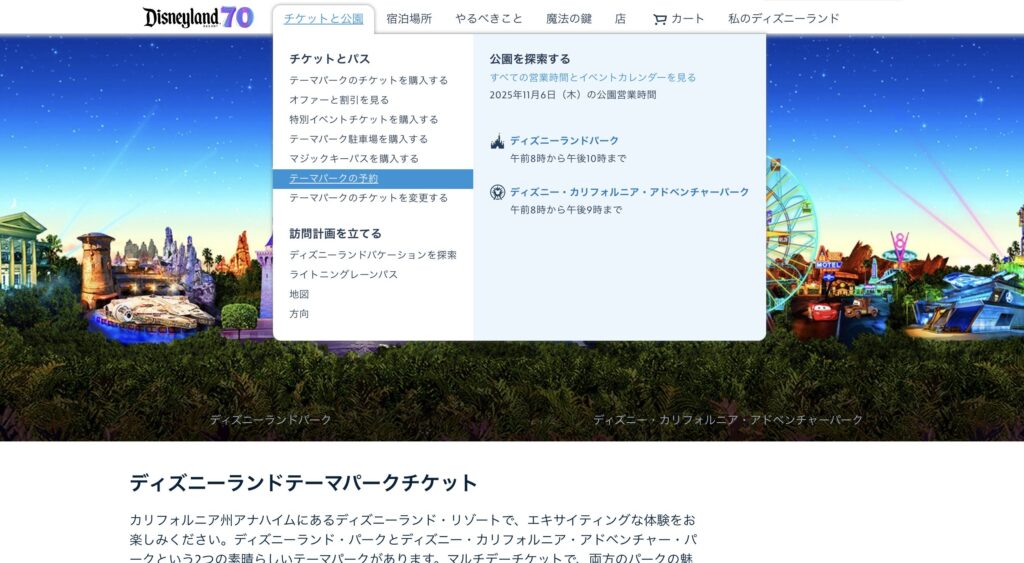 パークの入園予約は、ディズニーランド公式サイトで行います