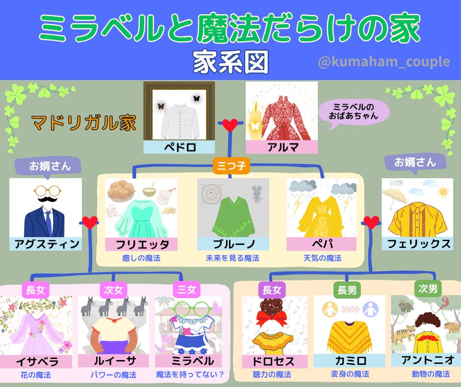 以上、「ミラベルと魔法だらけの家」のキャラクターと家系図についてご紹介しました☆
