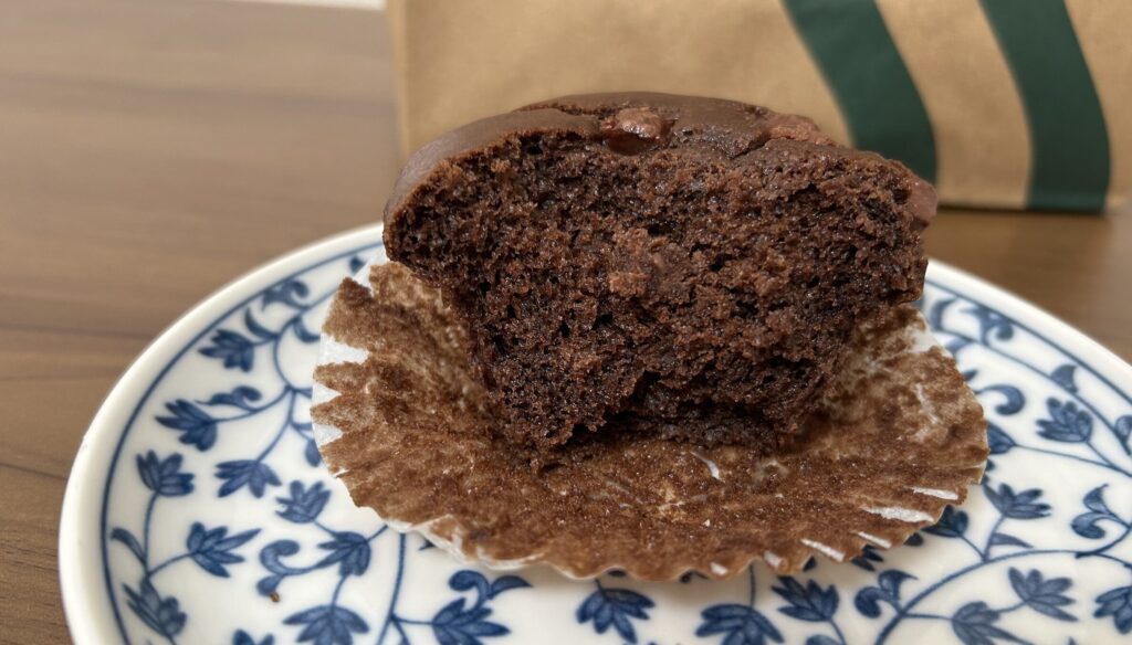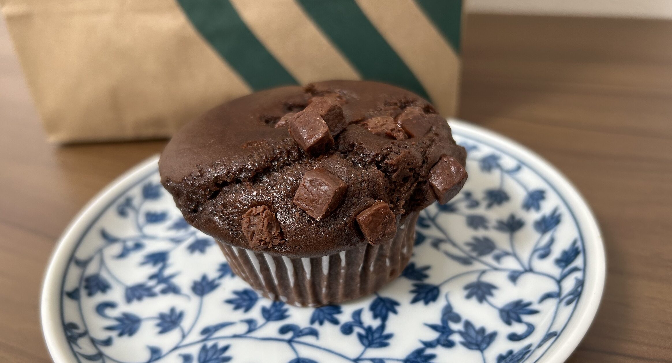 マフィン生地とトッピングされたチョコレートチャンクが、見た目にも食感にもアクセントになっています