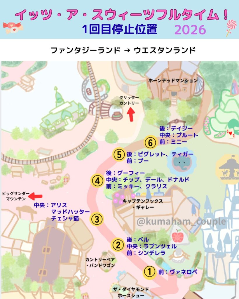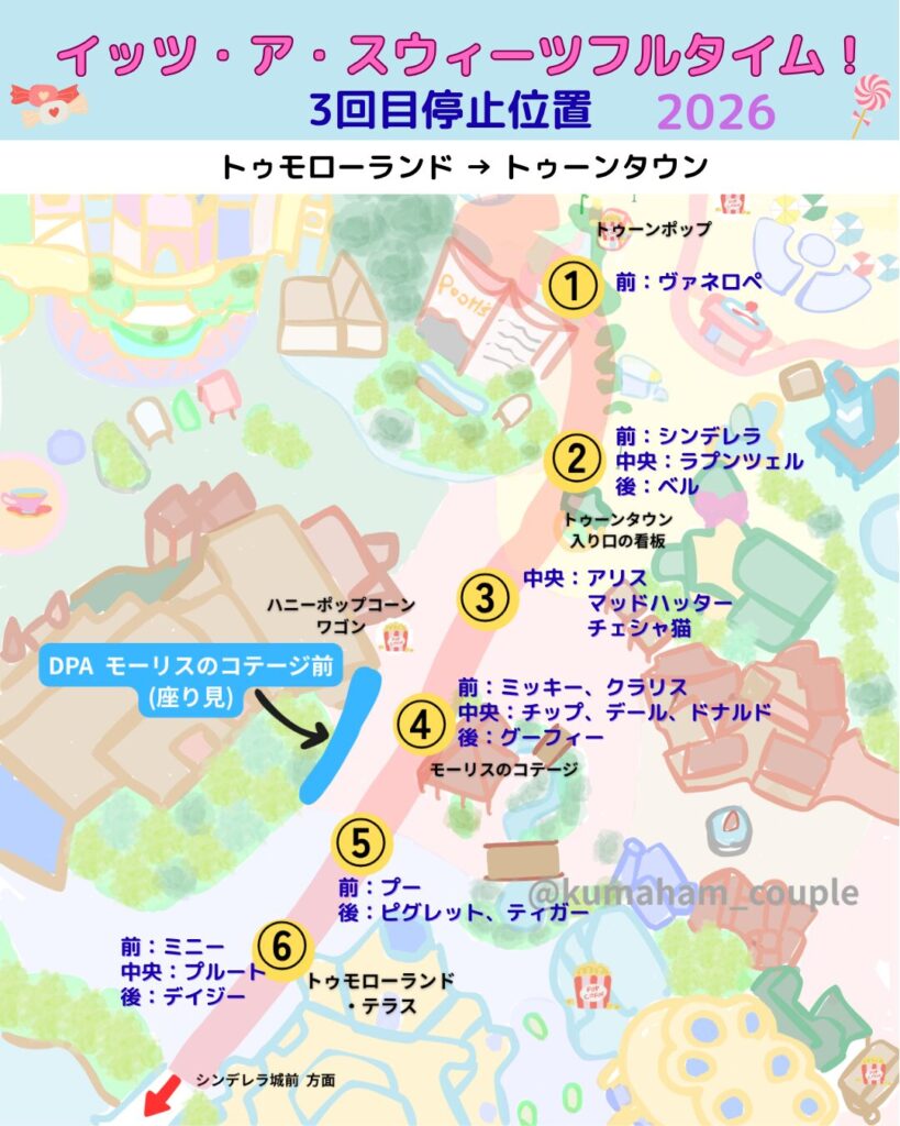ヴァネロペのパレード『イッツ・ア・スウィーツフルタイム!』の停止位置は?