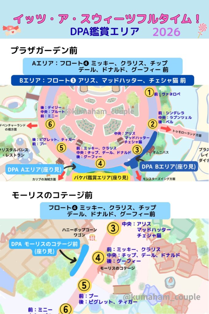 そして注意したいのが、各DPA鑑賞エリアで近くに停止するフロトが異なること!