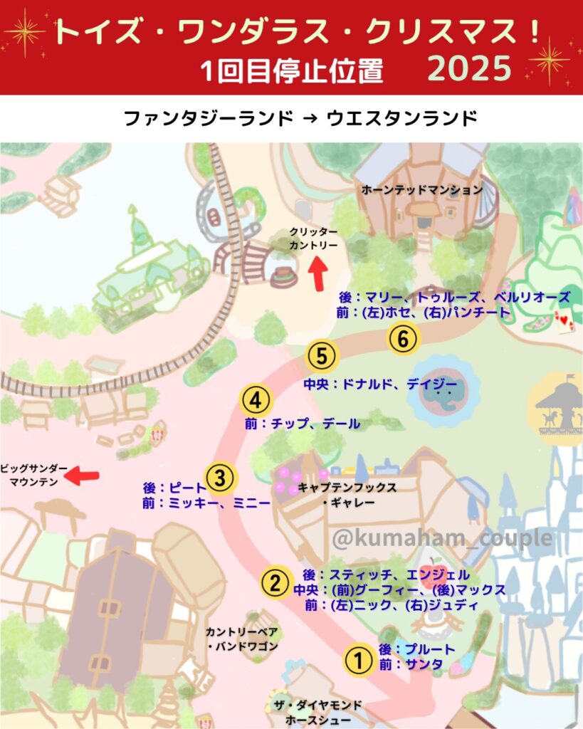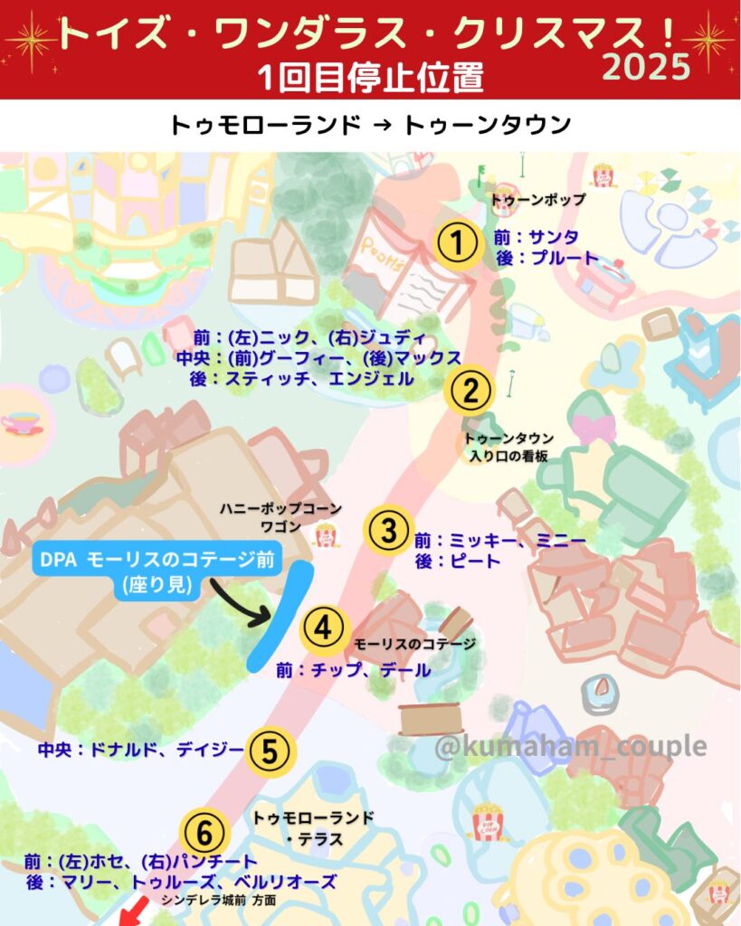 ディズニークリスマス2025トイズワンダラスクリスマス!フロート停止位置はここ